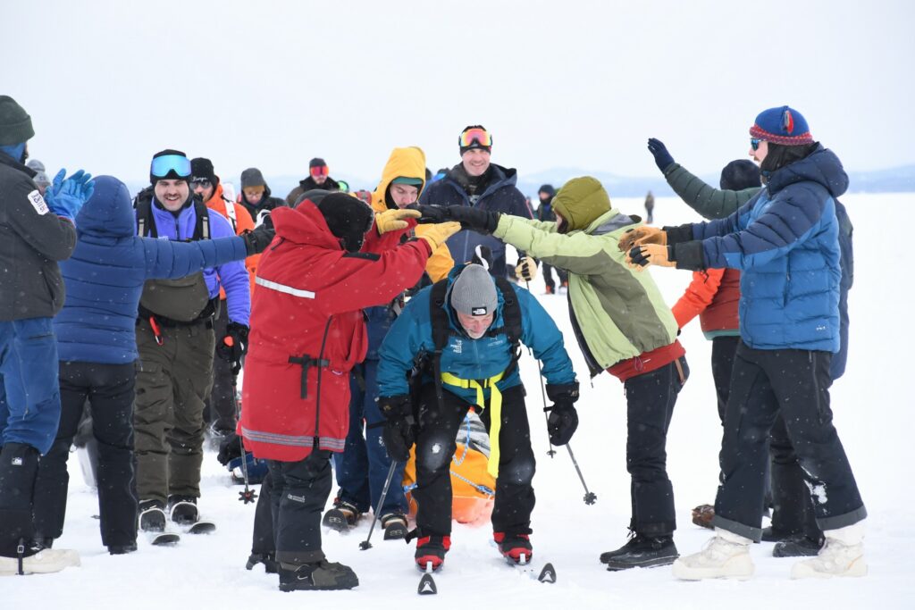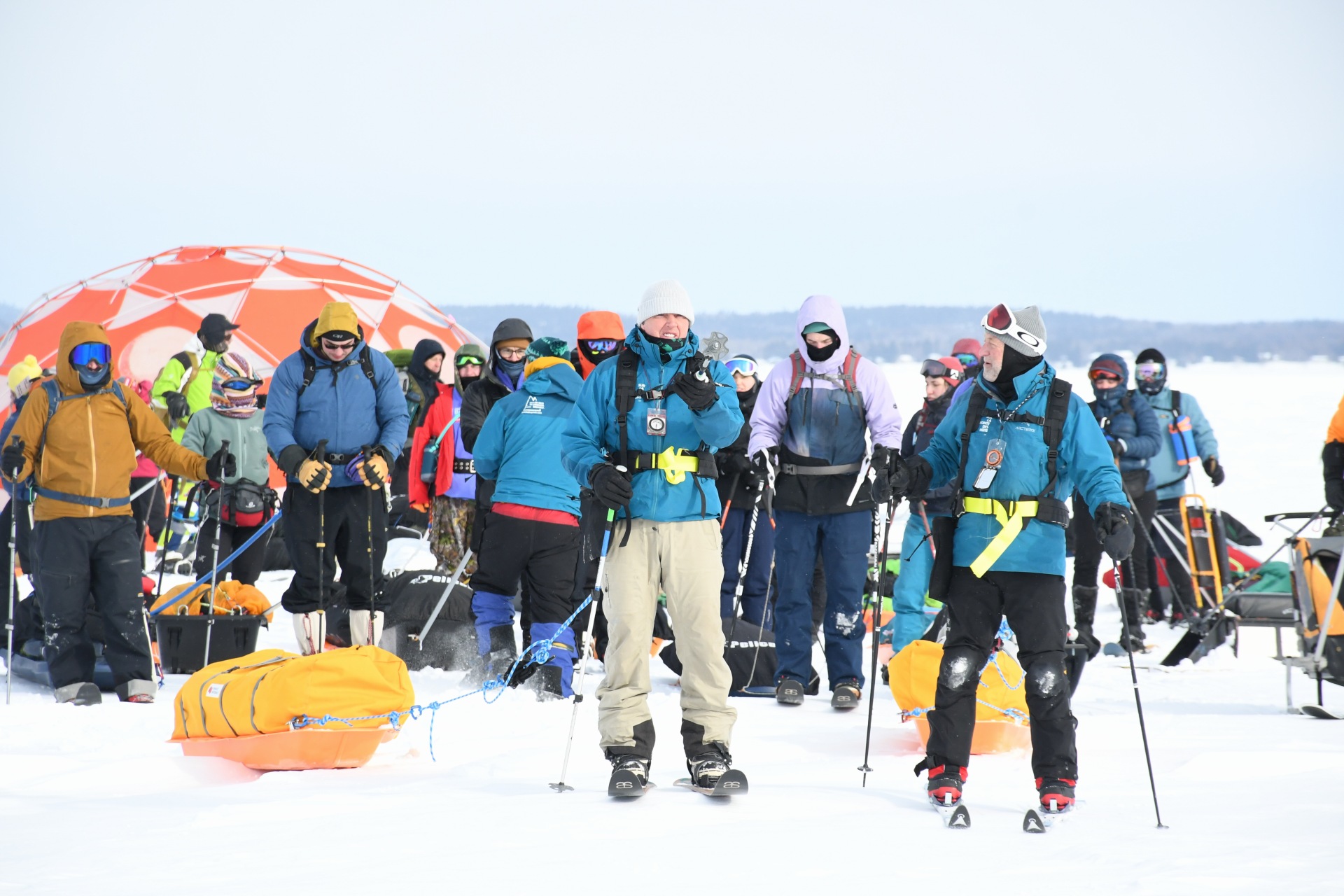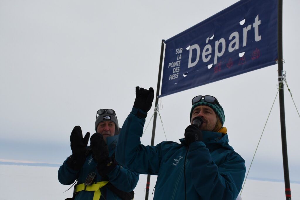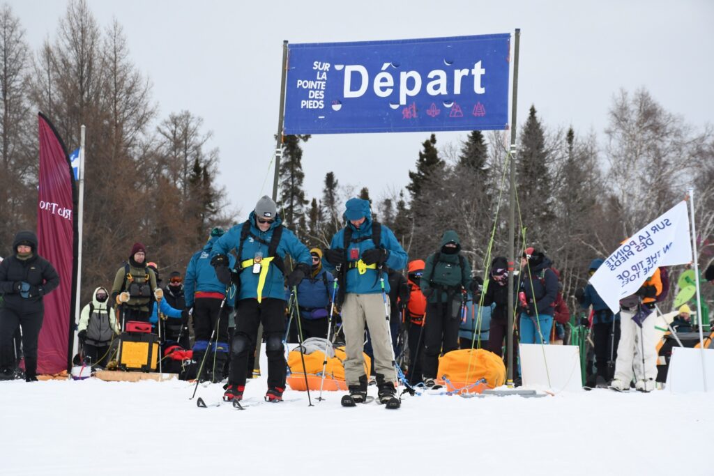 Le tapis blanc se déroule sous nos pieds. Nous y sommes. Les athlètes attendent patiemment sur la ligne de départ. Frénésie, hâte, peur, appréhension. Les participants sont prêts. Fourmis dans les jambes, les corps s’agitent. Sous les bons conseils de Julien, qui nous demande de nous activer sur place avant de passer la bannière de départ, la chaleur et l’énergie se ressentent (je ne fais pas référence à la température). Dans le but d’augmenter le plaisir de l’aventure, les conseils de sécurité suivront. Ce spectacle est magique à voir. Chaque personne chérit sa raison de se retrouver ici. Le dépassement de soi, la rencontre de l’autre, l’exploration du territoire, mais surtout pour LES JEUNES!!! Les deux Mario, généreux créateurs de ce défi, sont fiers de nous le faire crier tous en chœur.