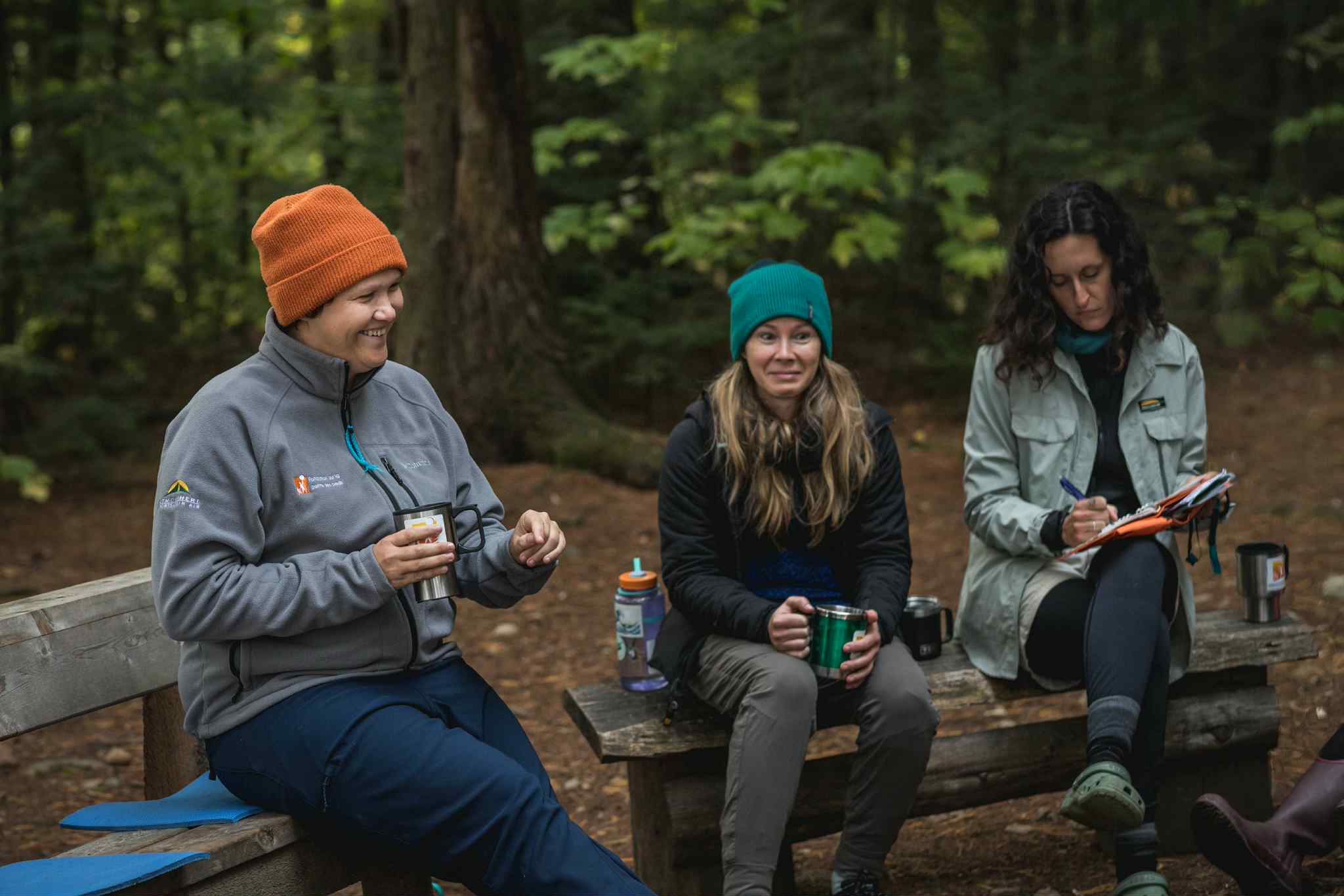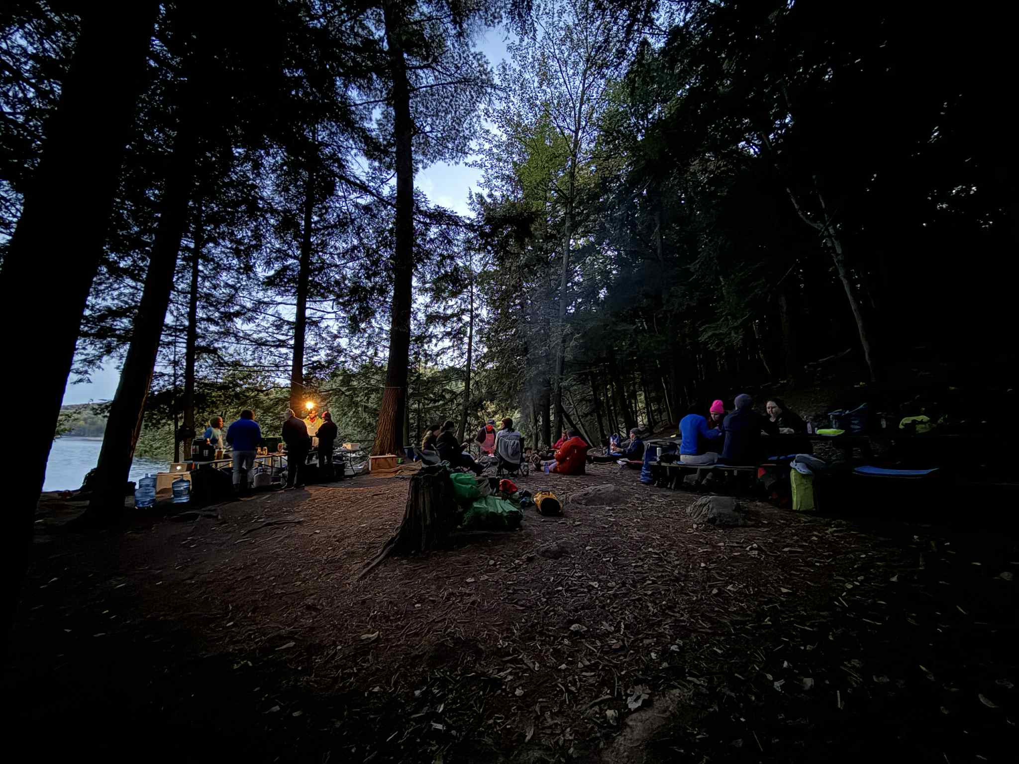 Pendant ce temps, Leah écrit dans notre journal de groupe, Myriam, Isabelle et Monica se baignent et les autres terminent d’installer leurs tentes.