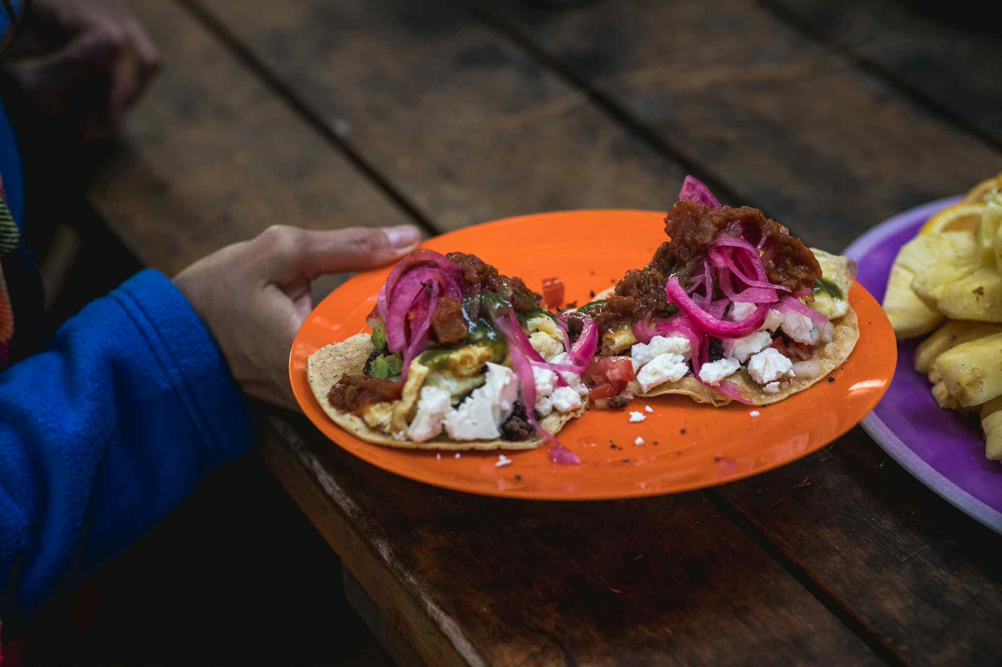 On se réveille en pensant à Mario (un des cofondateurs de la Fondation)! On est-tu bin! La lumière du soleil transperce la forêt, l’air est bon et un délicieux déjeuner inspiré par les traditionnels Huevos Rancheros nous attend sur le bord du feu. On est tellement emballées par le repas qu’on décide de le prendre en photo.
