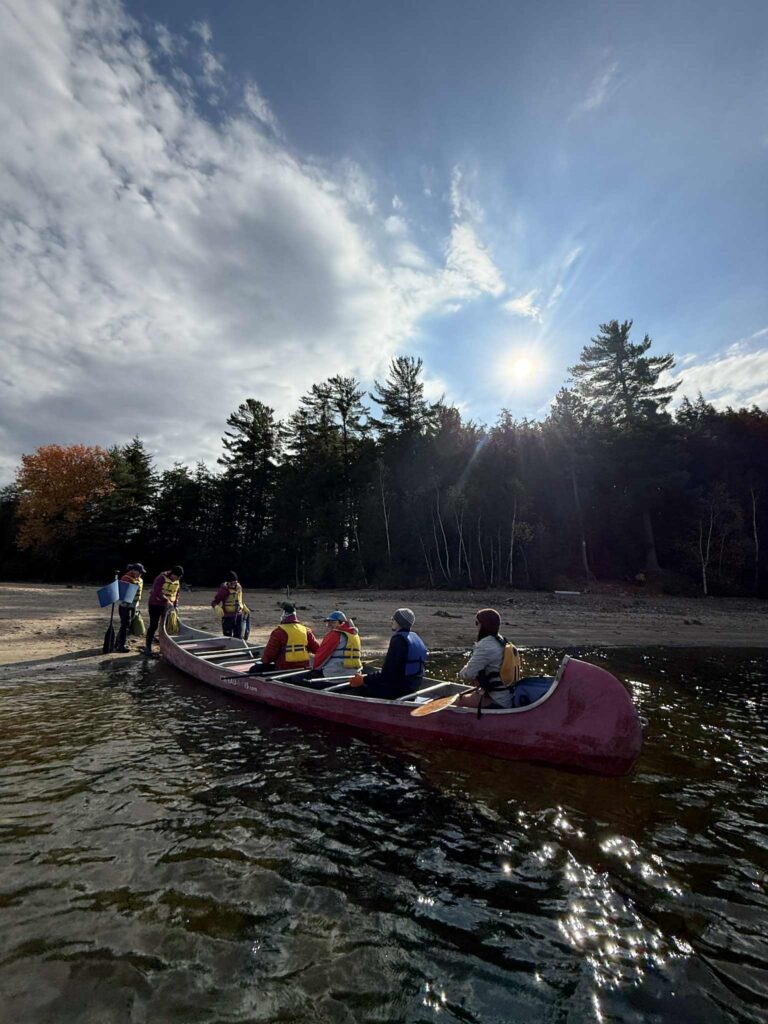 Avant d’atteindre notre lieu de campement pour la nuit, il y a eu ce moment, dans une petite baie à l’abri du vent, où Rosemarie a déclaré l’ambiance parfaite pour déballer le paquet-cadeau que la fondation avait préparé pour eux. C’est fou l’énergie que redonnent un sac de chips, des bonbons et du chocolat au beau milieu d’un trip en rabaska!