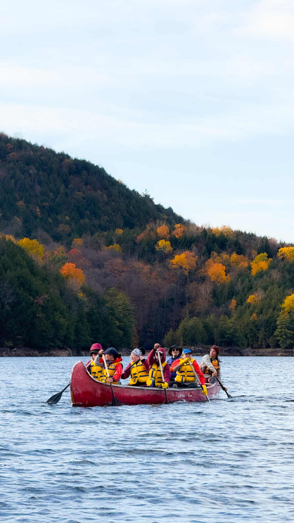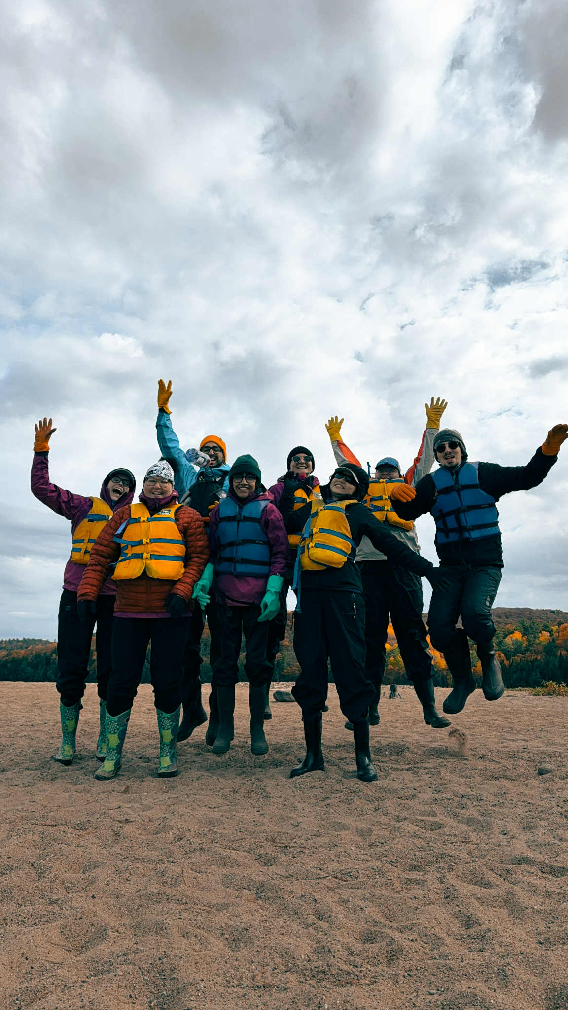 Puis le temps est venu de reprendre la route, pagaies en main. Les rabaskas se sont élancées sur une eau mouvementée : vagues, houle, vent puissant et rafales impressionnantes… Une traversée épique où le courage du groupe a, encore une fois, triomphé grâce à la force du collectif et au goût de l’aventure.