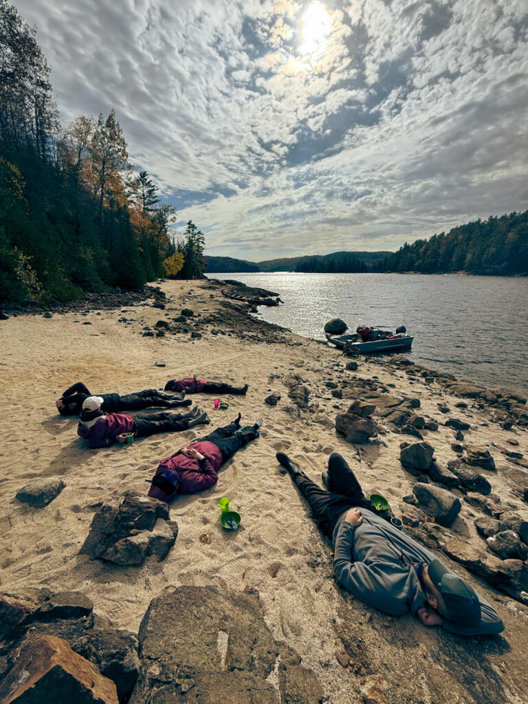 Après le dîner, ce fut l’heure d’une courte sieste sur la plage. Tous allongés dans le sable à se faire dorer la couenne au soleil, ils ont rechargé leurs batteries. Un petit jeu électrisant nous a permis de reprendre nos esprits et de repartir accomplir les derniers kilomètres de navigation de la journée.